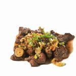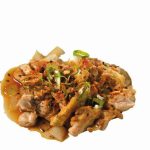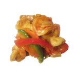 Stukjes kipfilet in een licht zoete chilisaus met paprika