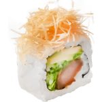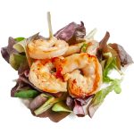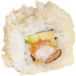 2 stuks. Geflambeerde garnalen nigiri met kaas
