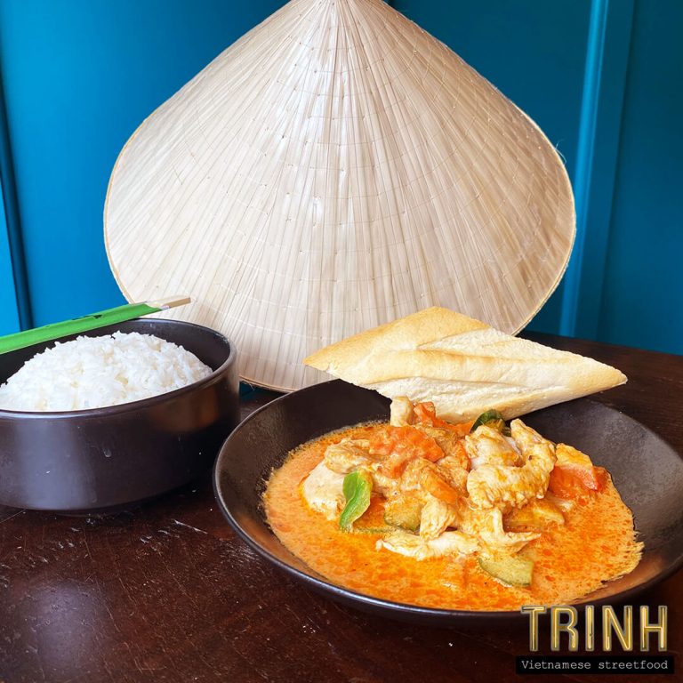 Curry noedelsoep met groenten, tofu, taugé, lente-uitjes, rode uien, koriander, citroen hoisin saus en chilisaus
