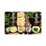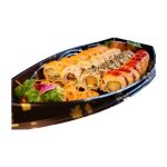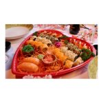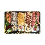 Menu is voor 2/3 Pers. - Ossenhaas met seizoensgroenten, in licht gekruide knoflooksaus. - Babi Pangang. - 3 Sate kipfilet op een bedje van tauge. - Mini Loempia's.